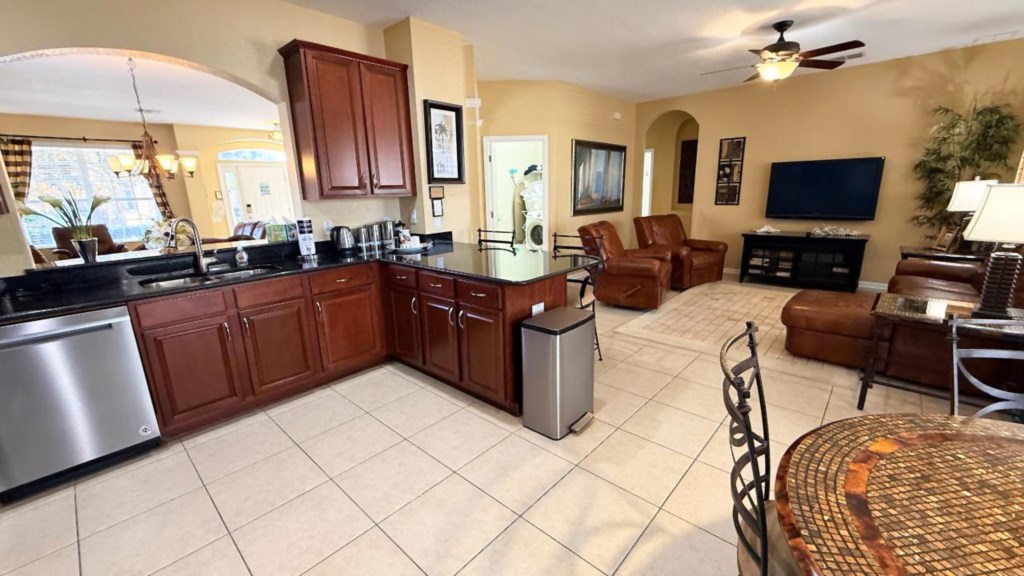 Walt Disney World is less than 15 miles from your front door at this house. You will also have with your reservation in this home free Wi-Fi and free local calls, as well as a washer and dryer in the home for your convenience.